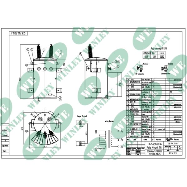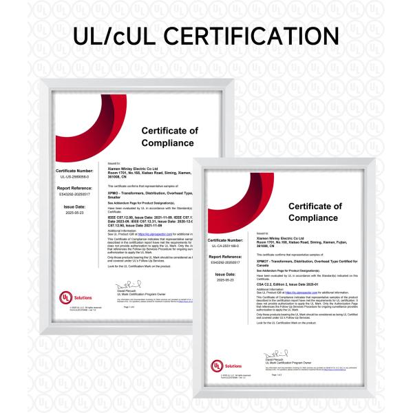 WINLEY Electric designs and manufactures a full line of single‑phase pole‑type distribution transformers for overhead utility systems. Built for dependable power and long service life, this 250 kVA pole‑mounted transformer pairs high capacity with industry‑leading safety, efficiency, and corrosion resistance — now reinforced by authoritative UL certification for assured compliance and field confidence.