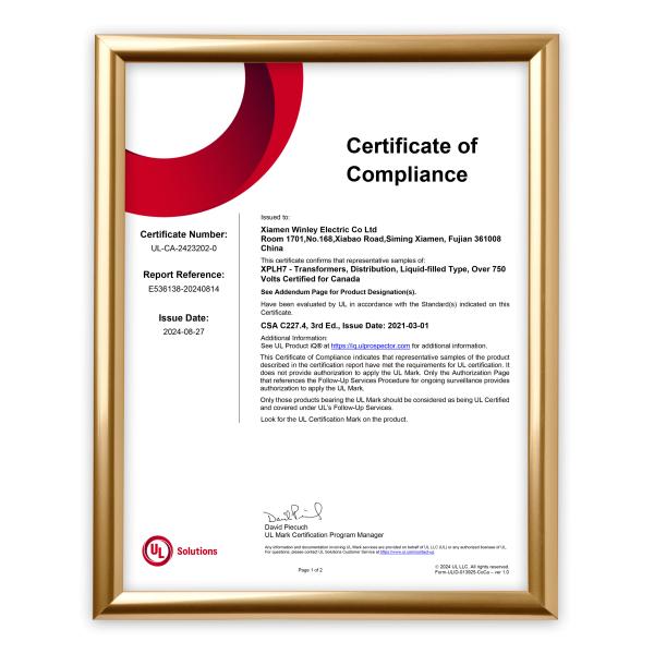 WINLEY's Pad Mounted transformers have also obtained cUL certificates while obtaining UL certificates. WINLEY's pad mounted transformers have passed cUL (The Canadian version of Underwriters Laboratories) test, and can be used safely and reliably in the Canadian market.